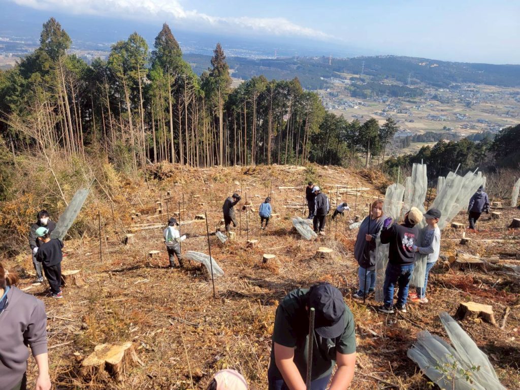 伐採が終わってから、地域の方々と協力して、植樹を進めています。